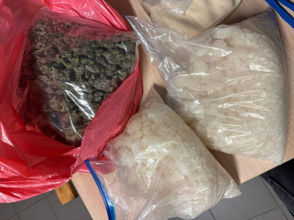 W torbie oraz w samochodzie mundurowi znaleźli znaczące ilości substancji odurzających, w tym marihuanę oraz chlorowodorek 3-CMC. Przy 30-letnim kierowcy zabezpieczono również 24 000 zł w gotówce. Łączna ilość zabezpieczonych narkotyków wyniosła prawie 2,5 kg. Obaj mężczyźni zostali zatrzymani.
