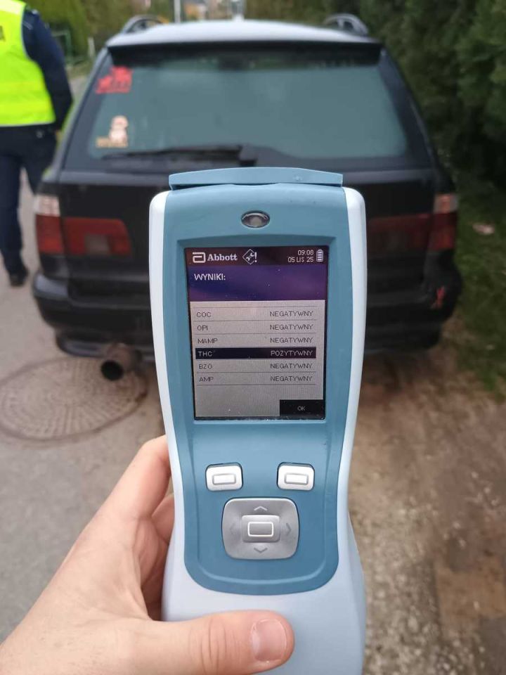 Policjanci przeprowadzili badanie testerem narkotykowym, które wykazało obecność marihuany. W pojeździe zabezpieczono pudełko z suszem roślinnym oraz młynek. Kierowcy zatrzymano prawo jazdy, a zabezpieczone środki przekazano do badań laboratoryjnych. Mężczyźnie pobrano także krew do dalszych badań.