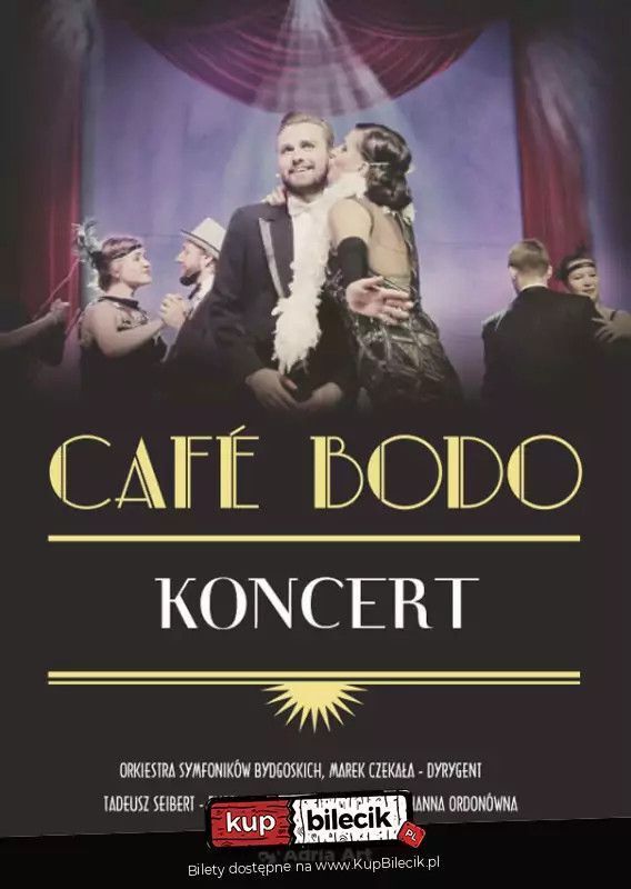"Cafe Bodo" to niezwykły koncert, w którym Eugeniusz Bodo i Hanka Ordonówna ożywają na scenie, śpiewając swoje największe przeboje: "Całuję twoją dłoń, madame", "Miłość ci wszystko wybaczy", "Umówiłem się z nią na dziewiątą" czy "Na pierwszy znak". Znakomici artyści wcielają się w role słynnych postaci. Tadeusz Seibert, finalista dziesiątej edycji "The Voice of Poland", występuje jako tytułowy Bodo, a Emilia Czekała zachwyca swoim głosem jako Hanka Ordonówna. Całość dopełniają sentymentalne dźwięki Orkiestry Symfoników Bydgoskich pod batutą Marka Czekały, które wprowadzą nas w magiczny nastrój tamtych lat.