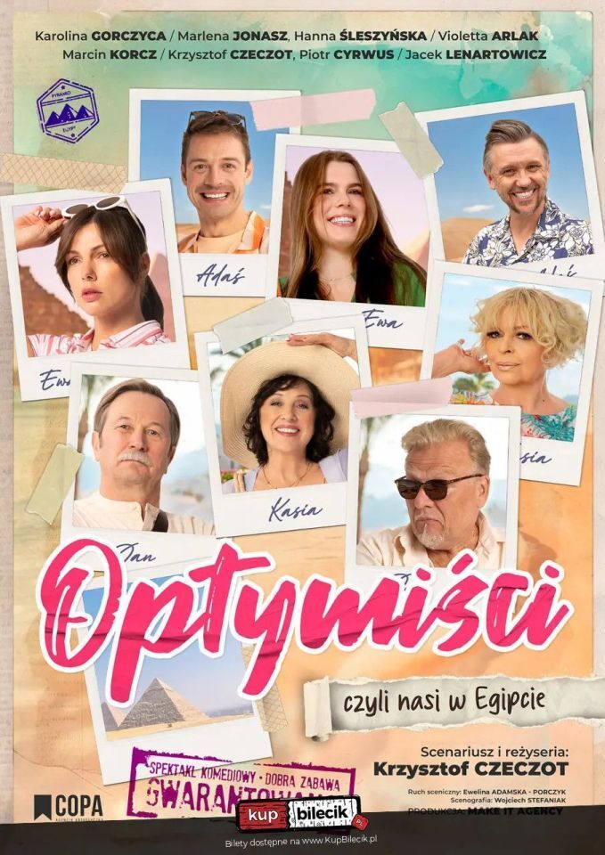 Optymiści - to odjechana komedia o rodzinie, która po raz pierwszy wspólnie wyjeżdża na wakacje do Egiptu. Ponieważ wakacje są all-inclusive wszystko musi być wy-pite, wy-jedzone, wy-tańczone i wy-pływane! Nic nie może się zmarnować! W końcu jest zapłacone!