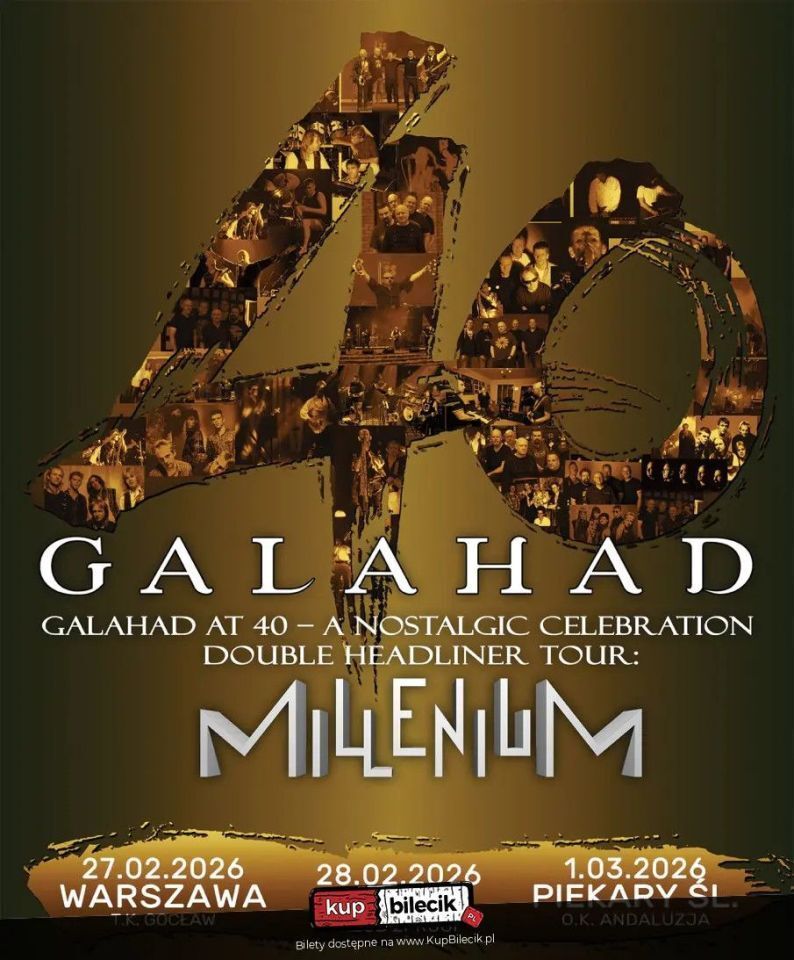 Przygotuj się na niezapomnianą podróż przez cztery dekady progresywnego rocka! Legendarny brytyjski zespół neoprogresywny Galahad świętuje swoje 40-lecie serią specjalnych koncertów w ramach trasy "Galahad at 40 - A Nostalgic Celebration". To prawdziwa uczta dla fanów progresywnego rocka, w formacie double headliner! Obok Galahad, na scenie pojawi się ceniona polska grupa Millenium, znana z emocjonalnego, klimatycznego i technicznie doskonałego brzmienia.