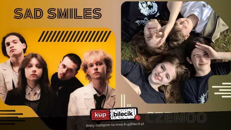 To jest ich czas! W ostatnich miesiącach zagrali na scenach głównych OFF Festivalu i Jarocin Festiwalu (wygrali przegląd kapel!), wystąpili też na Męskim Graniu, Inside Seaside, Great September oraz na Watermill Festivalu w Niemczech czy Takt w Serbii! Mają średnio po 18 lat i ponad 150 koncertów na koncie! Latem (nakładem poznańskiej wytwórni 33 Records) ukazał się ich debiutancki album "Bunt", który zbiera świetne recenzje! Sad Smiles to zespół złożony z czterech nastolatków, którzy kochają muzykę. Średnia wieku w kapeli to… 18 lat, a już piszą dojrzałe teksty, komponują muzykę i tworzą własne piosenki. Nie można też zamknąć ich w jednym gatunku muzycznym. To przede wszystkim alternatywny rock, ale nie tylko… Jedno jest pewno - jest tu pasja i energia. Dużo energii!