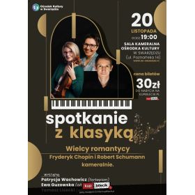| Wielcy romantycy Fryderyk Chopin i Robert Schumann kameralniedodano 2025-10-23 19:14:34 rozpoczęcie: