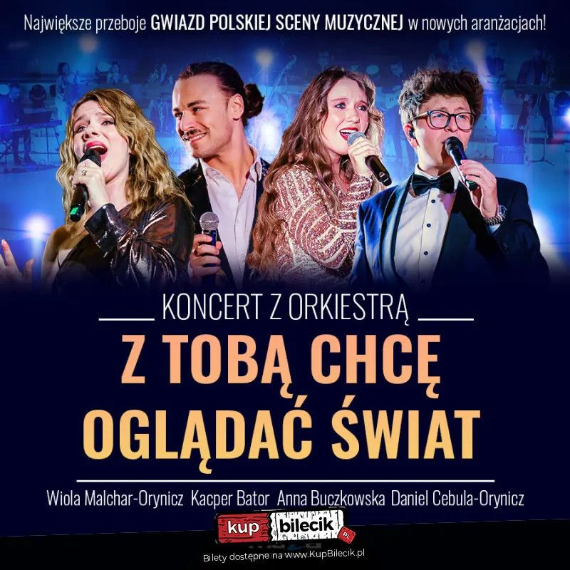 . Wykonawcy: - Anna Buczkowska - wokalistka, uczestniczka telewizyjnych programów muzycznych: Must be the music, Bitwa na głosy, czy 13.edycji The Voice of Poland oraz międzynarodowego projektu Eireborne (jedyna, polska wokalistka u boku Toby"ego Francisa). Przez 5 lat związana z Teatrem Rozrywki w Chorzowie, obecnie wokalistka zespołów Carrantuohill (muzyka celtycka) i Your Crush. Wśród artystów, z którymi współpracowała, są: Andrzej Piaseczny, Adam Makowicz, Lynn Hilary, Toby Francis, Kuba Badach, Majka Jeżowska, Lanberry. - Daniel Cebula-Orynicz - wokalista, wykładowca akademicki, trener zespołów wokalnych, producent muzyczny. Absolwent Wydziału Jazzu i Muzyki Rozrywkowej AM w Katowicach. Doktorant Akademii Muzycznej w Bydgoszczy. Finalista 6. edycji The Voice of Poland oraz laureat Festiwalu Twórczości Niezapomnianych Artystów Polskich ,,Pejzaż bez Ciebie" poświęconej pamięci Zbigniewa Wodeckiego. Współpracuje m.in. z: Teatrem Rozrywki w Chorzowie, Filharmonią Zabrzańską, Orkiestrą Em Band. Na swoim koncie ma wspólne projekty muzyczne z: Marcinem Wyrostkiem, Edytą Górniak, Margaret, Natalią Kukulską czy Stanisławem Soyką. - Kacper Bator - wokalista, instrumentalista, kompozytor i autor tekstów. Śpiewał u boku m.in.: Grażyny Łobaszewskiej, Mietka Szcześniaka, Anny Gadt, i Roberta Janowskiego Na swoim koncie ma m.in.: Grand Prix w Konkursie ,,Śpiewaj Razem z Nami"", nagroda jury w konkursie polskiej piosenki lat 60. i 70. ,,Powróćmy do piękna w słowie i muzyce"", a także udział w koncercie ,,Betlejem w Polsce"", z towarzyszeniem orkiestry Adama Sztaby. Pracuje nad wydaniem autorskiej płyty. Pomysłodawcami i realizatorami Koncertu są: Wiola Malchar-Orynicz i Daniel Cebula-Orynicz. Bilety do nabycia na: KupBilecik.plZ Tobą chcę oglądać świat! artyści: Wiola Malchar-Orynicz, Anna Buczkowska, Daniel Cebula-Orynicz, Kacper Bator, Dawid Makosz z zespołemNiezwykłe wydarzenie muzyczne, w znacznej części, jest poświęcone pamięci Zbigniewa Wodeckiego - wspaniałego artysty, który pozostawił po sobie niezapomniane utwory. W programie znalazły się również przeboje innych polskich wykonawców, które na stałe wpisały się na listę największych polskich przebojów. Usłyszymy piosenki z repertuaru: Wojciecha Młynarskiego, Zdzisławy Sośnickiej, Czesława Niemena, Alicji Majewskiej, Krzysztofa Krawczyka, Anny Jantar, Andrzeja Zauchy i zespołu Maanam. Na scenie zobaczymy charyzmatycznych wokalistów, którzy mają już w swoim dorobku udziały w popularnych telewizyjnych programach muzycznych (m.in. The Voice of Poland), nagrody muzyczne i ciekawe wydarzenia, z gwiazdami polskiej sceny: Wiolę Malchar-Orynicz, Annę Buczkowską, Daniela Cebulę-Orynicza oraz Kacpra Batora. Wykonawcom będzie towarzyszyć 11-osobowy zespół instrumentalny pod kierownictwem wybitnego pianisty - Dawida Makosza. Bilety do nabycia na: KupBilecik.pl |