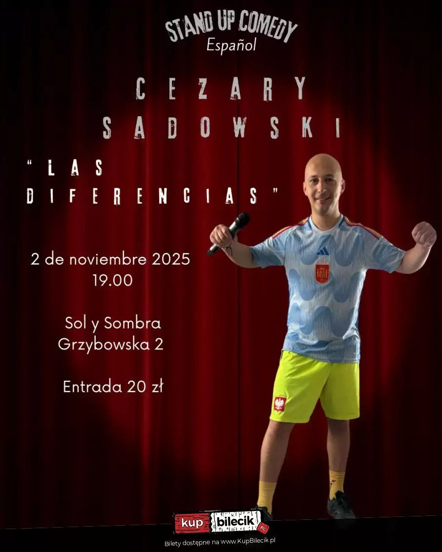 | Cezary Sadowski - Las diferencias (monólogo español)dodano 2025-11-11 19:14:04 Noche de comedia en Poznań. Cómico de Polonia quiere contar a vosotros sobre las diferencias. Las diferencias entre España y Polonia, los españoles y los polacos, hombres y mujeres, entre música y reggaeton. Todas! ¿Quieres saber qué es lo que más sorprende a los polacos en España? Es solo una respuesta! Ven y escucha! Compra de la entrada esta equivalente a la reserva del asiento. El aforo esta limitado. Zakup biletu jest równoznaczny z rezerwacją miejsca siedzącego. Ilość miejsc ograniczona. Bilety do nabycia na: KupBilecik.plCezary Sadowski artyści: Cezary SadowskiWieczór komediowy w Warszawie. Komik z Polski chce opowiedzieć o różnicach. Różnice między Hiszpanią a Polską, Hiszpanami a Polakami, mężczyznami a kobietami, między muzyką a reggaetonem. Bilety do nabycia na: KupBilecik.pl |