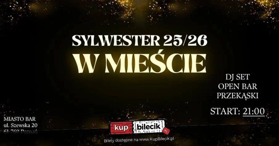 | Open Bar, Finger Food, DJ - Setdodano 2025-12-10 19:13:41 Zapraszamy na wyjątkową noc do Miasto Bar. Nowy rok bez tłoku, bez kolejek, nawet bez wyciągania karty - za to w miłym towarzystwie, z dobrą muzyką i pysznymi koktajlami! Sylwester w Miasto bar to nie masowa impreza - oferujemy limitowaną liczbę miejsc i formułę Premium Open Bar, czyli wszystko w cenie! Bilety do nabycia na: KupBilecik.plSylwester 2025/2026 artyści: Impreza sylwestrowaSZALONY SYLWESTER 2025! Przywitaj Nowy Rok w wyjątkowym stylu w VIVAT! Bilety do nabycia na: KupBilecik.pl |