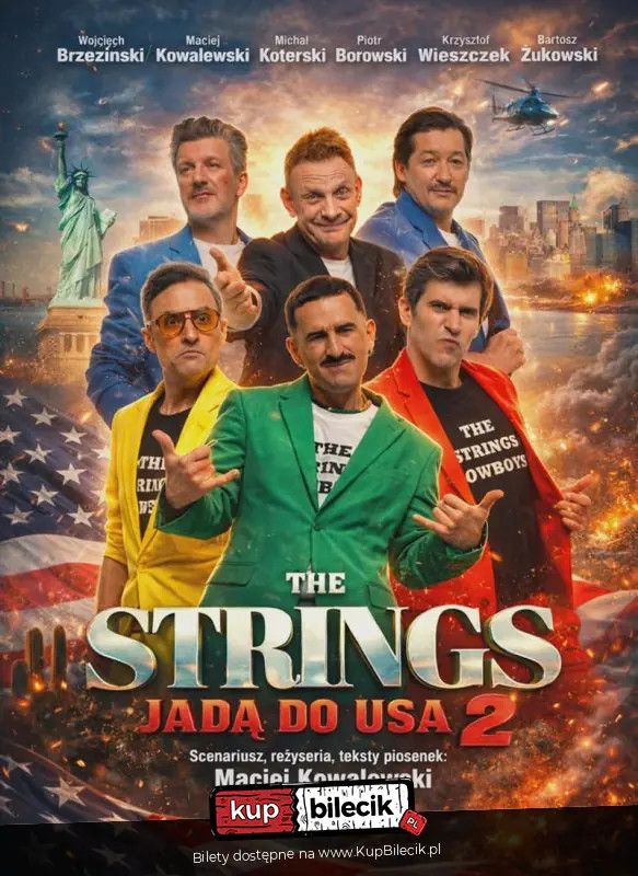 bilety: Miała być wielka amerykańska kariera - wyszło jak zwykle. Zespół się rozpada, życie nie rozpieszcza, a do tego zniknął ich przyjaciel Lerua... gdzieś w okolicach granicy USA z Meksykiem. The Strings reaktywują więc zespół i ruszają w podróż pełną muzyki, absurdów i nieoczekiwanych przygód. Zamiast wielkich scen - małe bary, zamiast sławy - cała galeria barwnych postaci i sytuacji, których nie da się zaplanować. Czy odnajdą przyjaciela Czy wrócą na scenę I czy w ogóle wrócą Przekonaj się w drugiej części kultowej komedii muzycznej "The Strings" autorstwa i w reżyserii Macieja Kowalewskiego. Scenariusz i reżyseria - Maciej Kowalewski The Strings 2 jadą do USA! artyści: Brzeziński, Kowalewski, Koterski, Borowski, Wieszczek, ŻukowskiMiała być wielka amerykańska kariera - wyszło jak zwykle. Zespół się rozpada, życie nie rozpieszcza, a do tego zniknął ich przyjaciel Lerua… gdzieś w okolicach granicy USA z Meksykiem. The Strings reaktywują więc zespół i ruszają w podróż pełną muzyki, absurdów i nieoczekiwanych przygód. Zamiast wielkich scen - małe bary, zamiast sławy - cała galeria barwnych postaci i sytuacji, których nie da się zaplanować. Czy odnajdą przyjaciela? Czy wrócą na scenę? I czy w ogóle wrócą? Przekonaj się w drugiej części kultowej komedii muzycznej "The Strings” autorstwa i w reżyserii Macieja Kowalewskiego. Bilety do nabycia na: KupBilecik.pl |