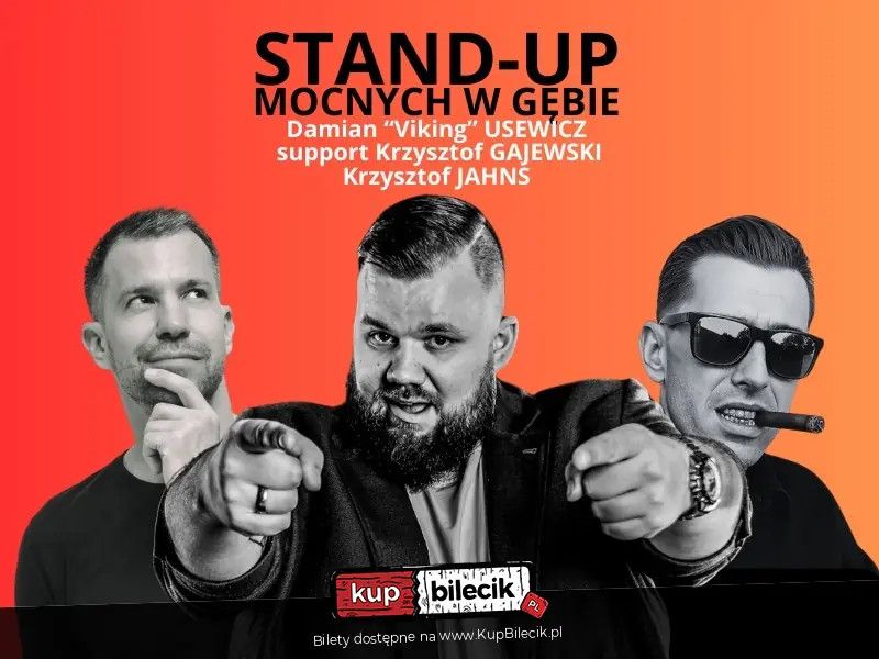 | Poznań | Damian "Viking" Usewicz, Krzysztof Jahns, Krzysztof Gajewskidodano 2026-01-28 19:14:01 Najstarsza scena stand-upowa w Poznaniu. Kultowy cykl, którego nie wolno przegapić. Wystąpią: Damian "Viking" Usewicz w programie TRAUMA. Damian Usewicz, znany również jako "Viking", to szczeciński komik, konferansjer i organizator imprez komediowych. Ze sceną związany jest od około 2006 roku, kiedy zaczynał w studenckim kabarecie Popelina. Później stał się jednym z pionierów stand-upu w Szczecinie (i nie tylko), współtworząc lokalną scenę komediową, w tym takie inicjatywy jak Stand-Up Szczecin, Szczecińska Liga Stand-Upu czy Szczecińska Scena Komediowa. Jest Dyrektorem Artystycznym Festiwalu Komedii SZPAK- jednego z największych i najstarszych w Polsce. * Wydarzenie dla dorosłych * Zakaz nagrywania wydarzenia * Osoby przeszkadzające mogą zostać wyproszone bez możliwości zwrotu biletu Bilety do nabycia na: KupBilecik.plStand-up Mocnych W Gębie artyści: Najlepsi komicy stand-up comedy w PolsceStand-up Mocnych W Gębie to kultowy cykl imprez odbywających się raz w miesiącu w klubie Pod Minogą. Scena funkcjonuję od ponad 3 lat i była pierwszym miejscem w Poznaniu goszczącym komików. Pod Minogą charakteryzuję duża scena, klimatyzowana sala zaaranżowana w układzie siedzeń teatralnych dla dobrej widoczności i oczywiście najlepsi komicy w swoim fachu. Za prowadzenie i dobór występujących odpowiada gospodarz miejsca Krzysztof Jahns. Sprawdź kiedy jest najbliższy stand-up i już dziś kup bilety. Bilety do nabycia na: KupBilecik.pl |